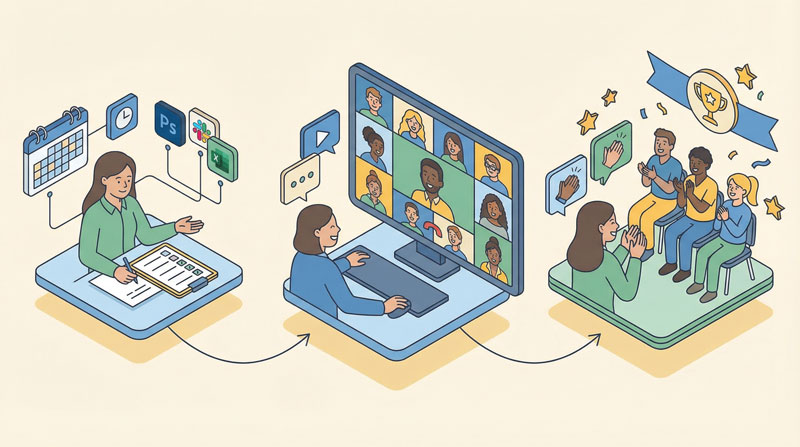 事前準備を丁寧に行い、司会進行を明確にし、時間配分にメリハリをつけることで、オンラインでも満足度の高い社内イベントは十分に実現できます。