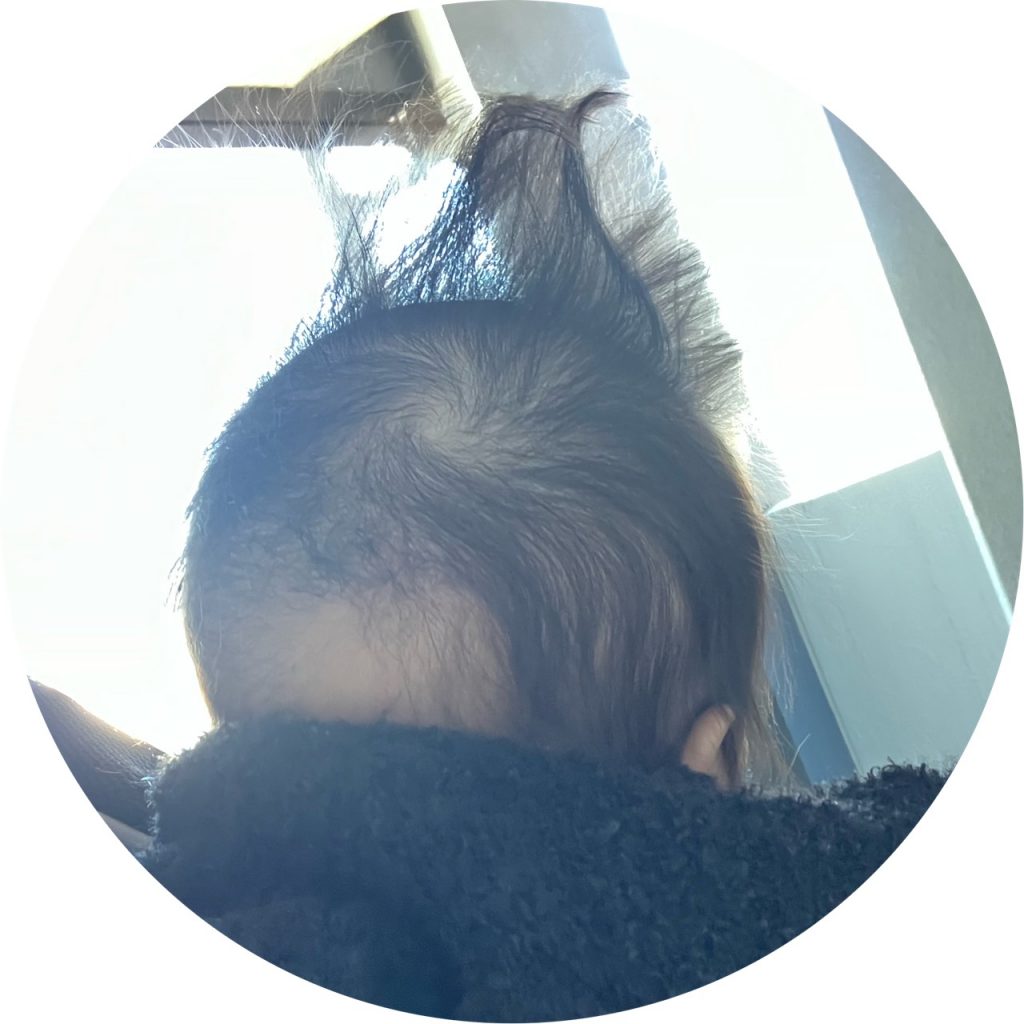 そして、寝ることが多い赤ちゃんが通る道として、頭の後ろの「おハゲちゃん」もデビューしました。