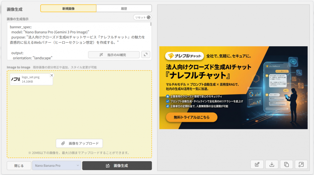 ナレフルチャットが、画像生成の最上位モデル「Nano Banana Pro」に対応〜日本語テキストを美しく表現する画像生成AIで、ビジネス資料やデザイン制作を革新〜
