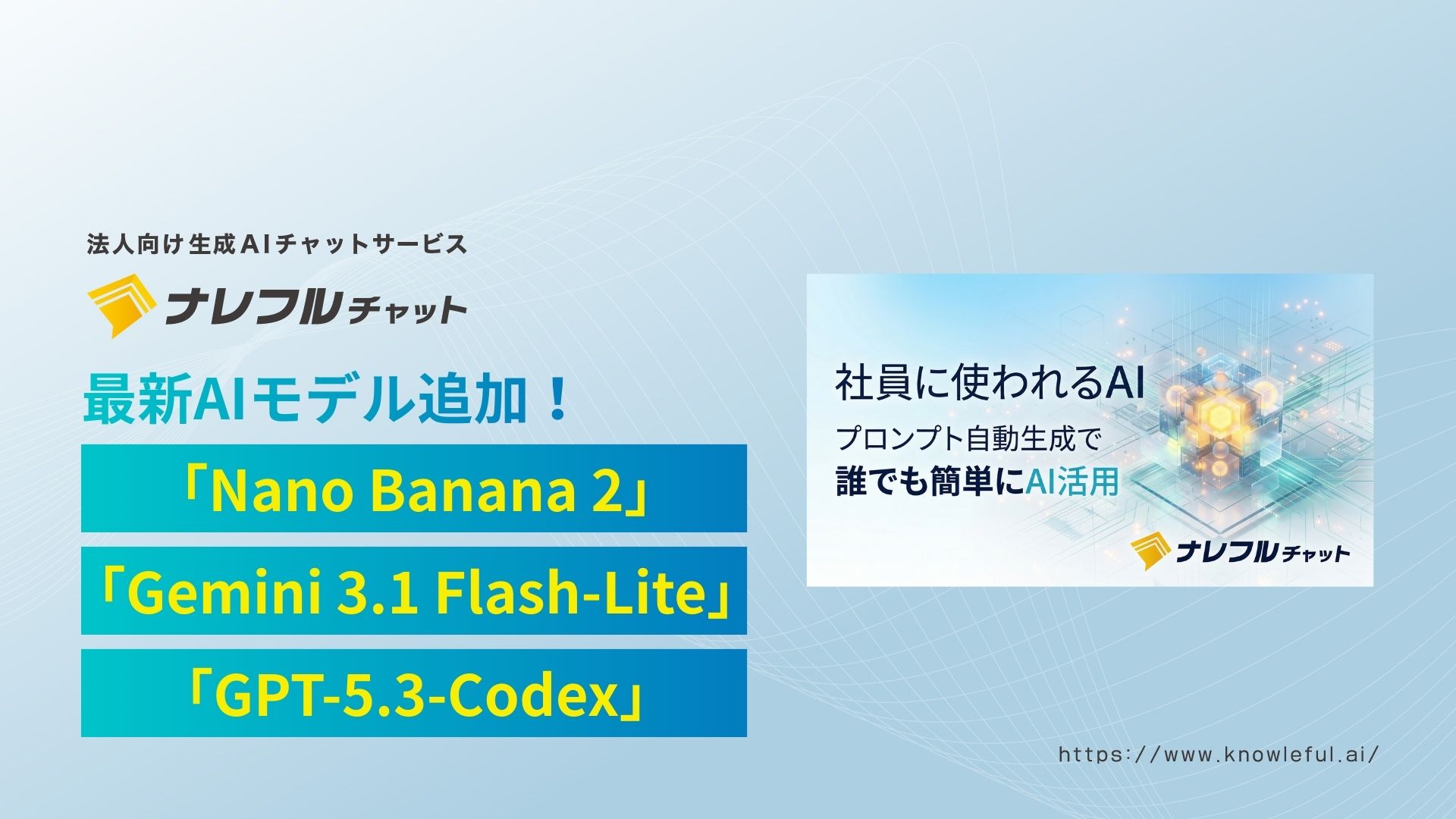 ナレフルチャット、Google『Nano Banana 2』『Gemini 3.1 Flash-Lite』とOpenAI『GPT-5.3-Codex』を追加